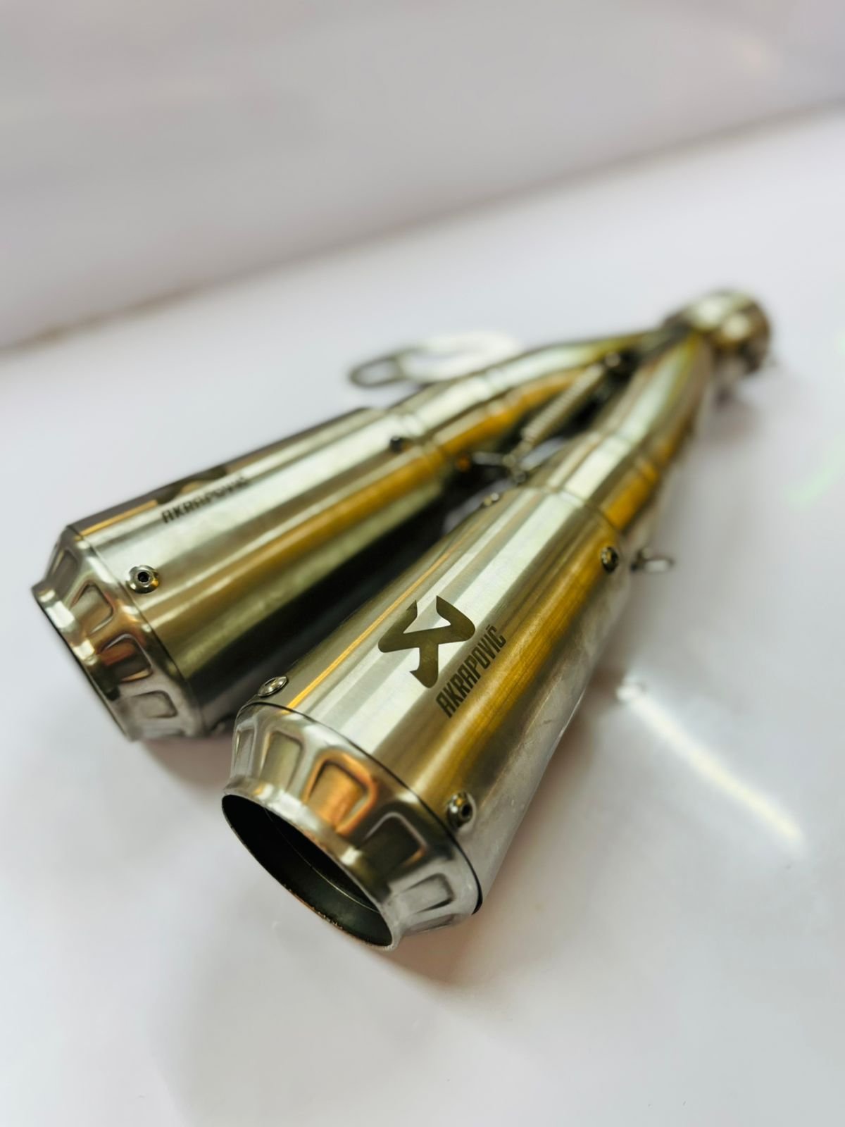 Elevate your ride with a high‑performance, twin‑outlet exhaust from the renowned brand Akrapovič. This double‑barrel system combines aggressive sound, refined engineering and premium materials for riders who want both style and substance.
