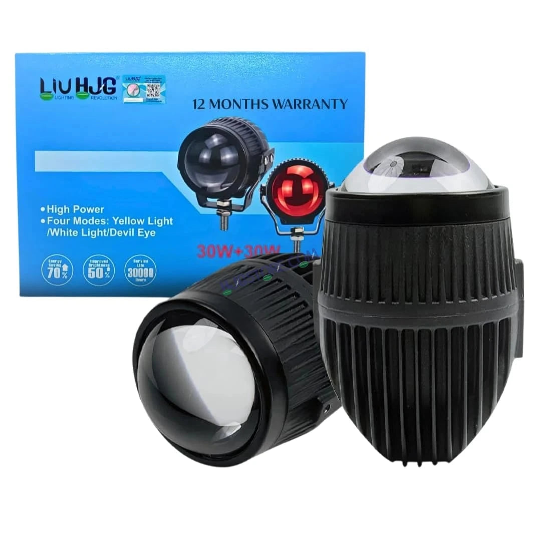 Modes / Colours: White mode, Yellow mode, Warm‑White (Yellow+White) low/high beams, Red DRL.