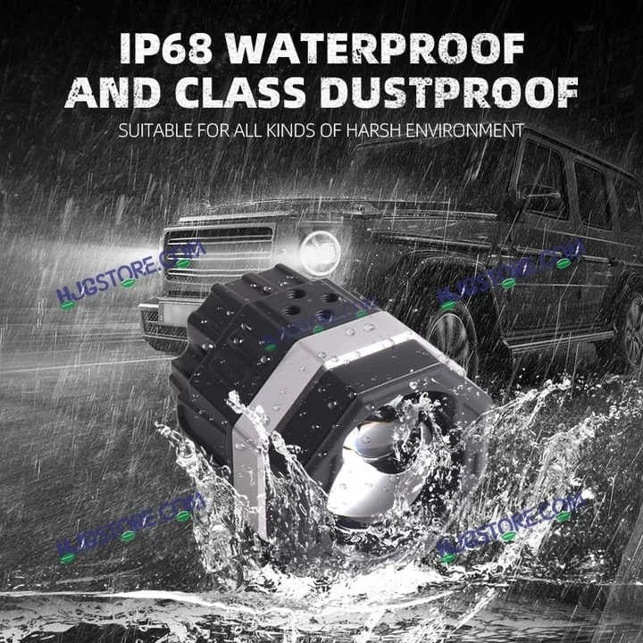 Improves visibility significantly on roads with poor lighting, during fog/mist, heavy rain or dusty conditions thanks to its dual‑colour and high‑power output.